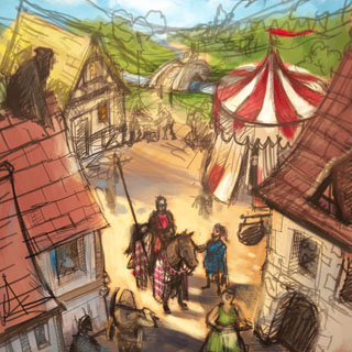 Dominion Coverskizze 03: Ich schicke den Verlagen gerne Farbskizzen weil ich es selber sehr schwer finde einen Entwurf anhand einer Schwarz/Weiss-Skizze zu beurteilen. So auch im Fall von Dominion. Allerdings muß ich dazu sagen, daß diese ersten Farbskizzen kaum Zeit in Anspruch nehmen und daher leicht verworfen werden können. |